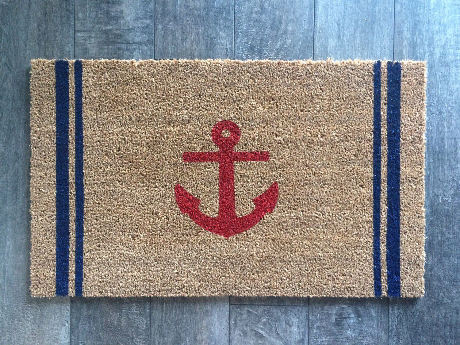 - The perfect custom doormat for a nautical, bright summer theme.