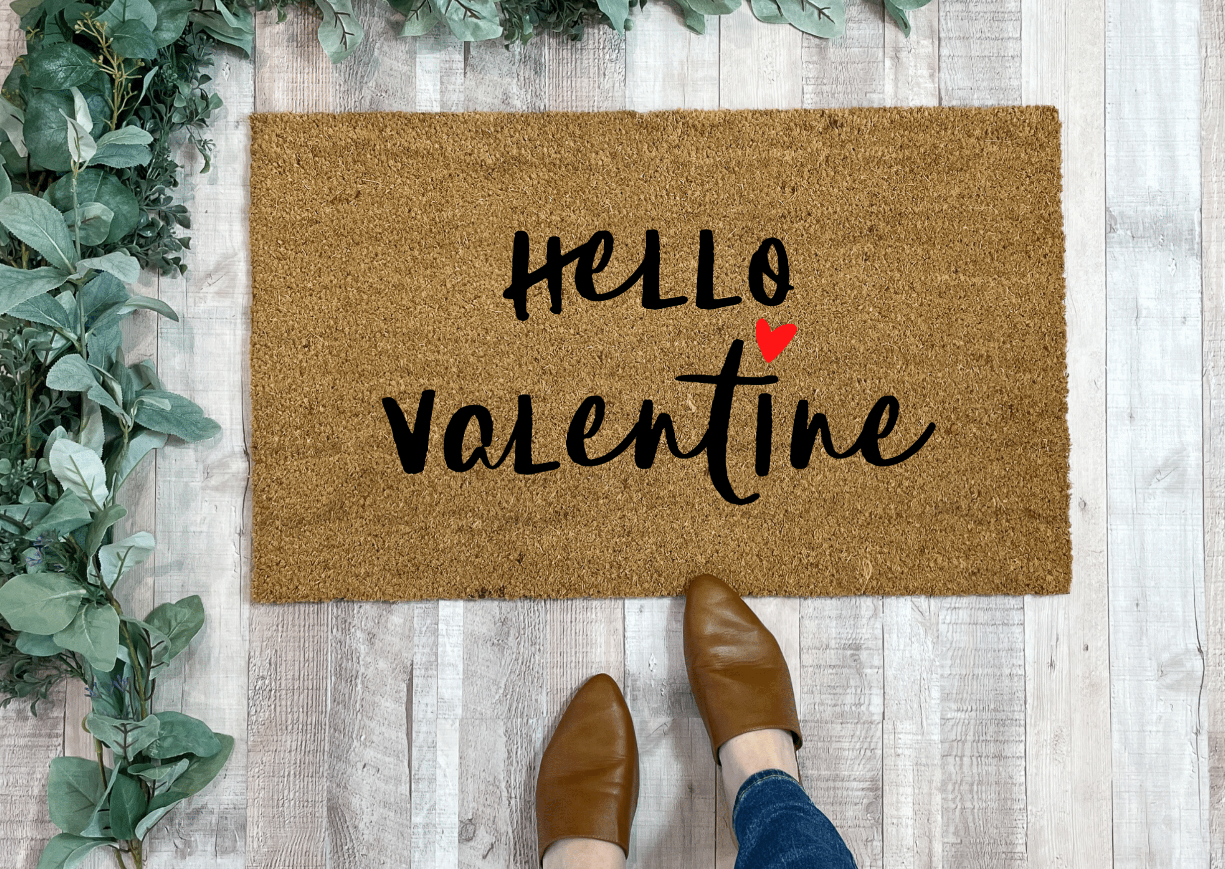 Say hello this Valentine's Day with a sweet welcome mat at your front door! This doormat features a bright text design and red heart that will complement any decor style!