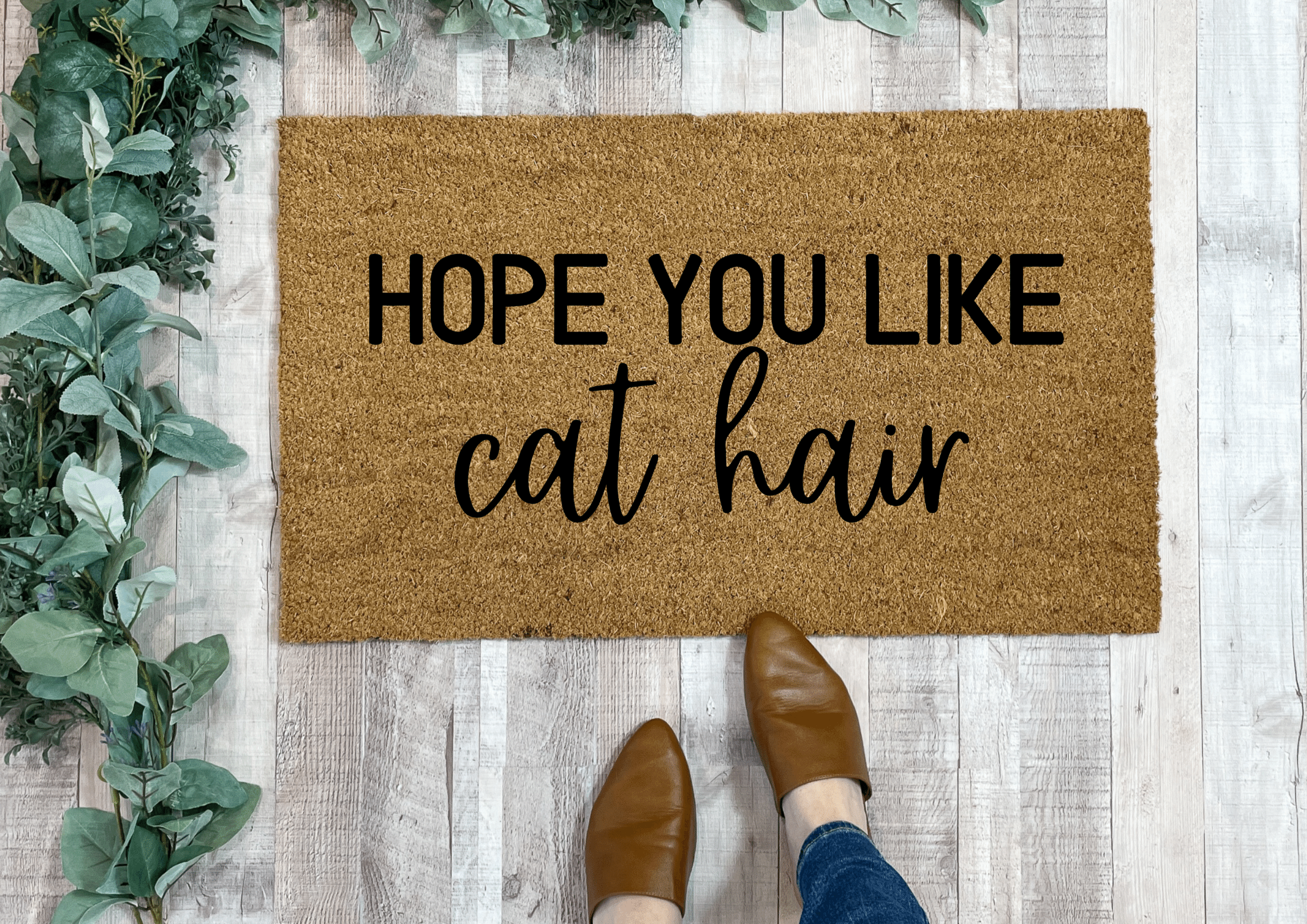 The message is as clear as day from this doormat: hope you like cats (and their hair). Our funny doormat design will drive home your point and make your guests smile too, while the durable construction of this outdoor doormat helps you keep your floors clean.