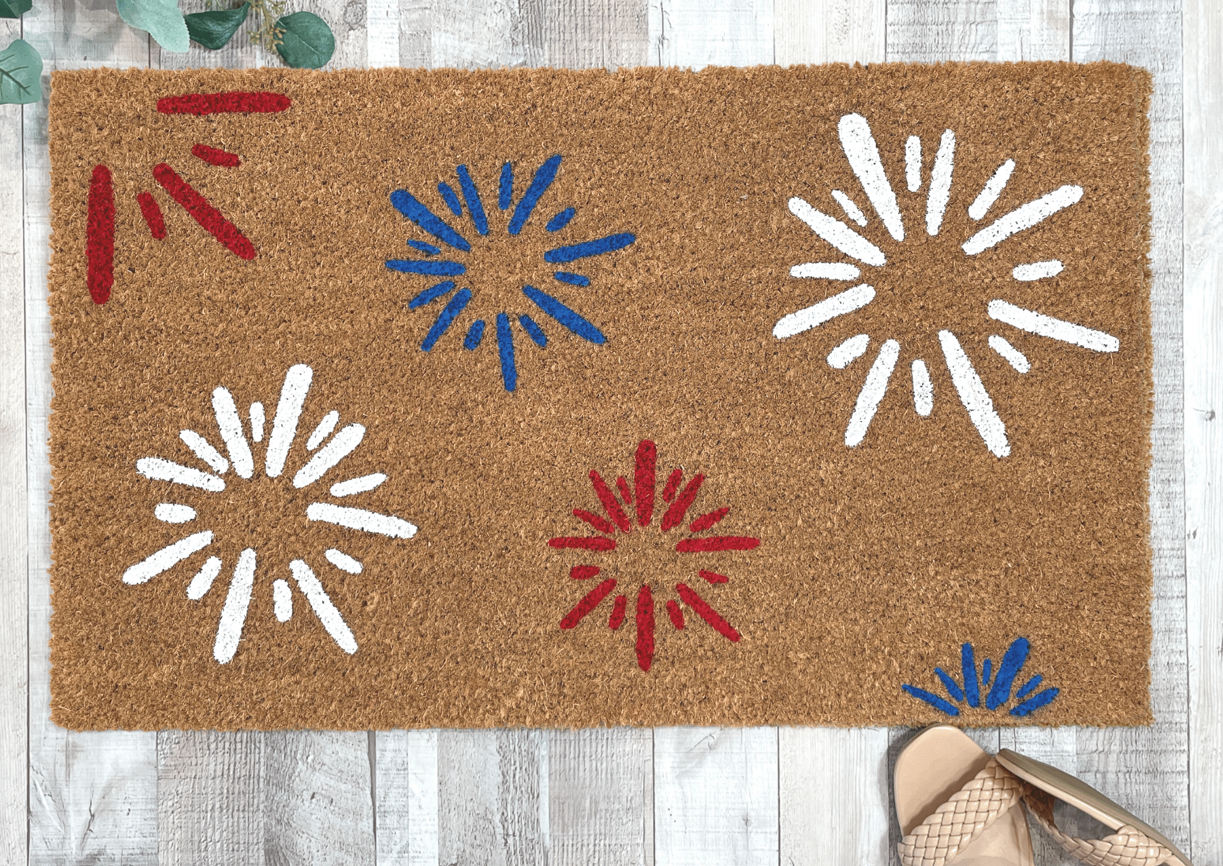 The Patriotic Summer Fireworks Doormat showcases vibrant colors and a sprightly design that will add an element of fun to any stoop or patio. Hand-made just for you, this mat features crisp, patriotic hues with a modern feel to help welcome friends and family into your home.