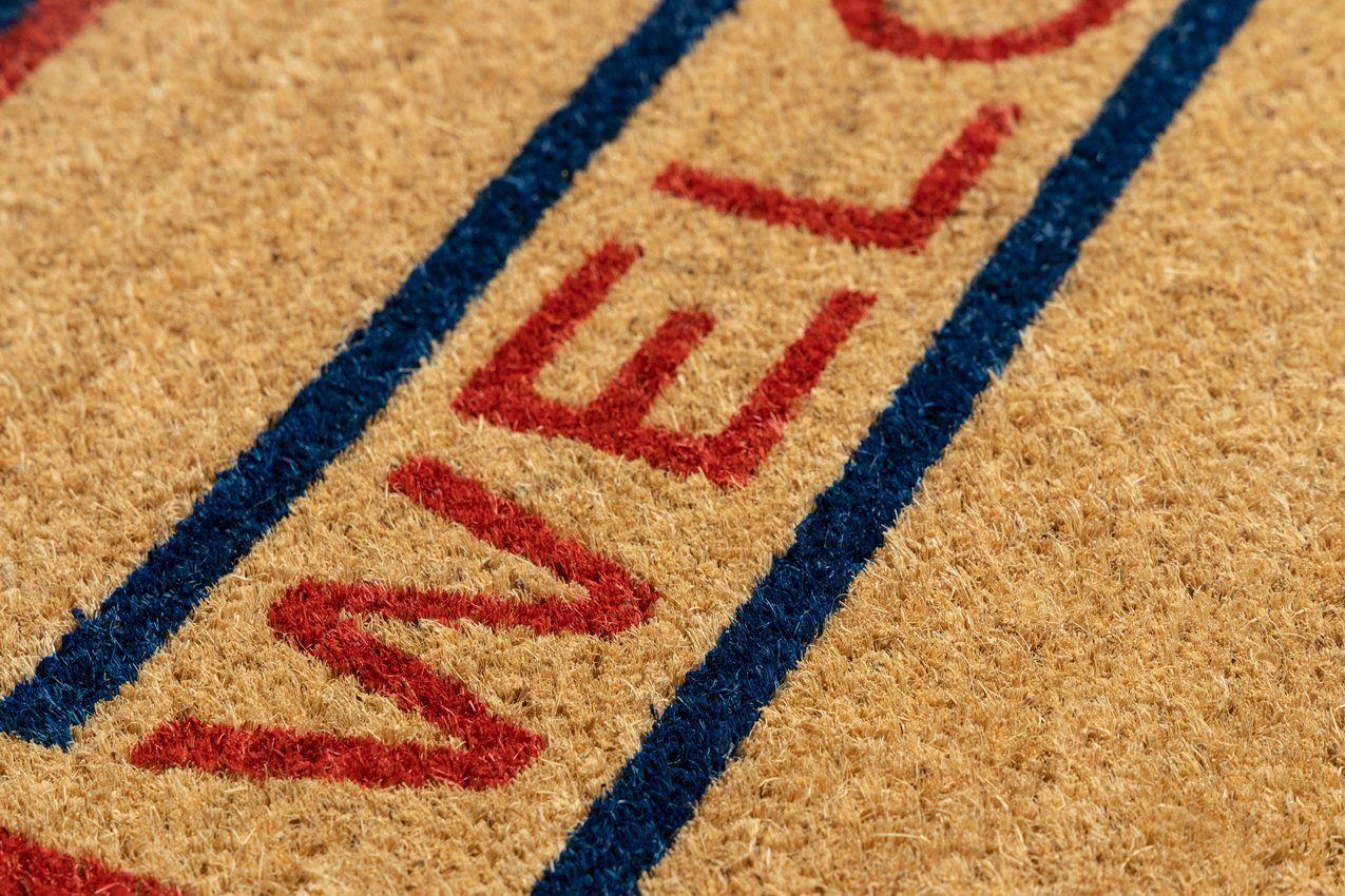 Care Info: Though we use all weather paints and a UV sealant to ensure that your mat is perfect for your doorstep, we suggest that you keep your mat as dry as possible to avoid darkening of the fibers. To clean, simply shake out…easy as that!