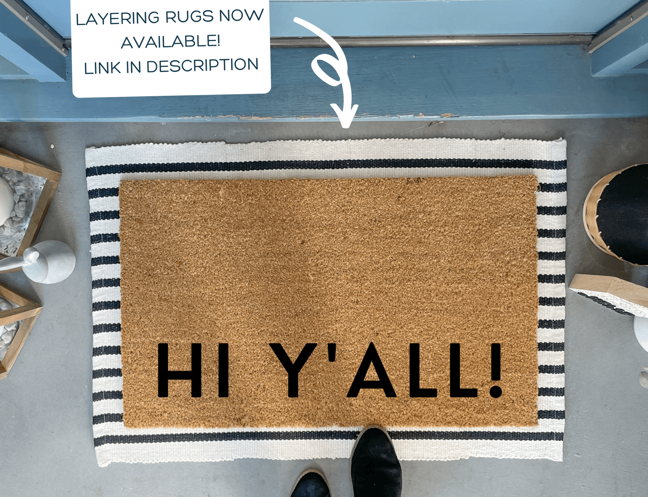 Give your home an inviting touch of modern style with our hand made 'HI Y'ALL' Doormat. Made with durable coir fiber that traps dirt from shoes below, this mat will make a great impression on your guests while giving your home an updated look it deserves.
