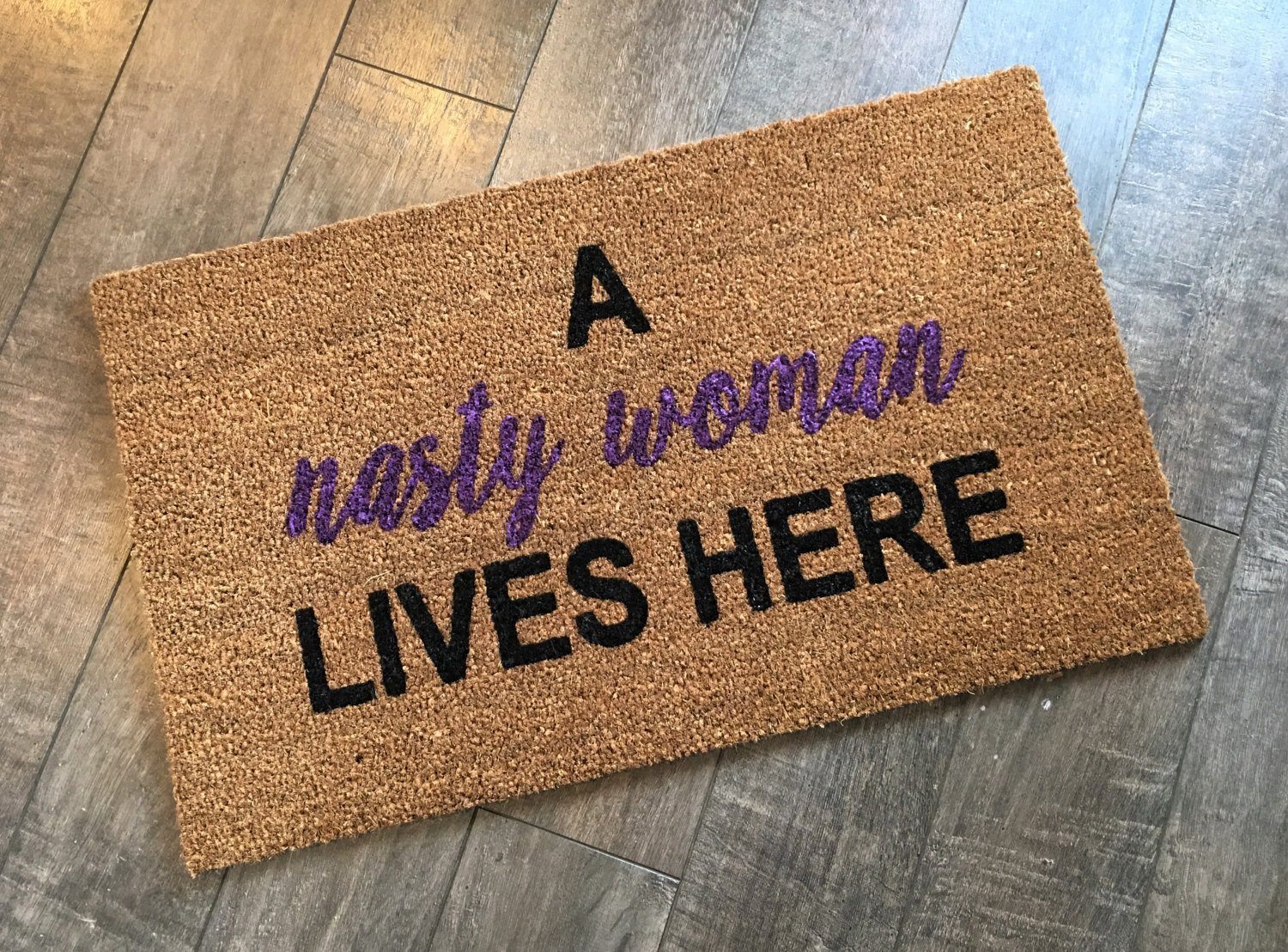 Our Nasty Woman Political Doormat is the perfect way to show all visitors how you really feel! All of our welcome mats are hand-painted and each design is available in a wide variety of colors so you can customize by choosing your color combination!