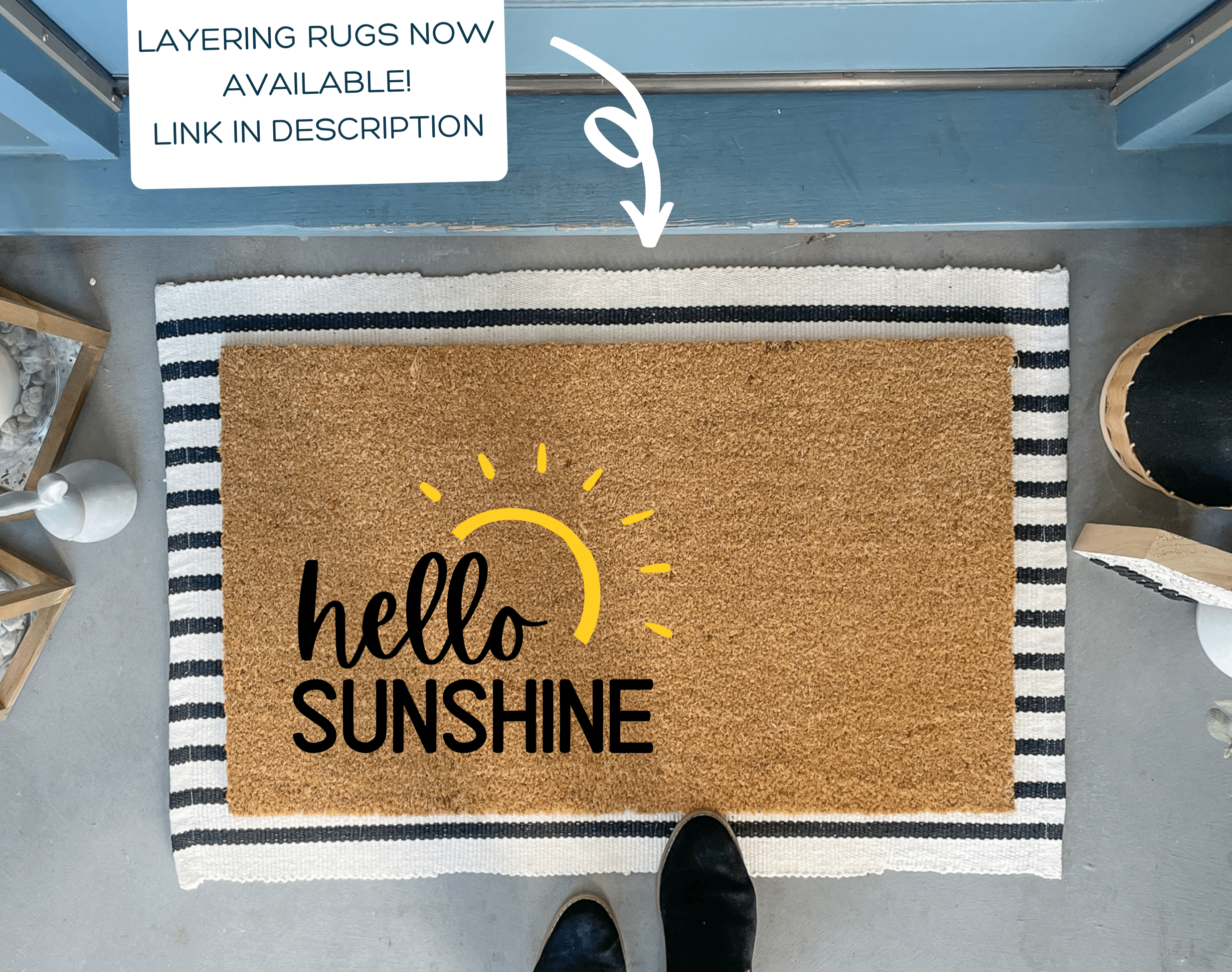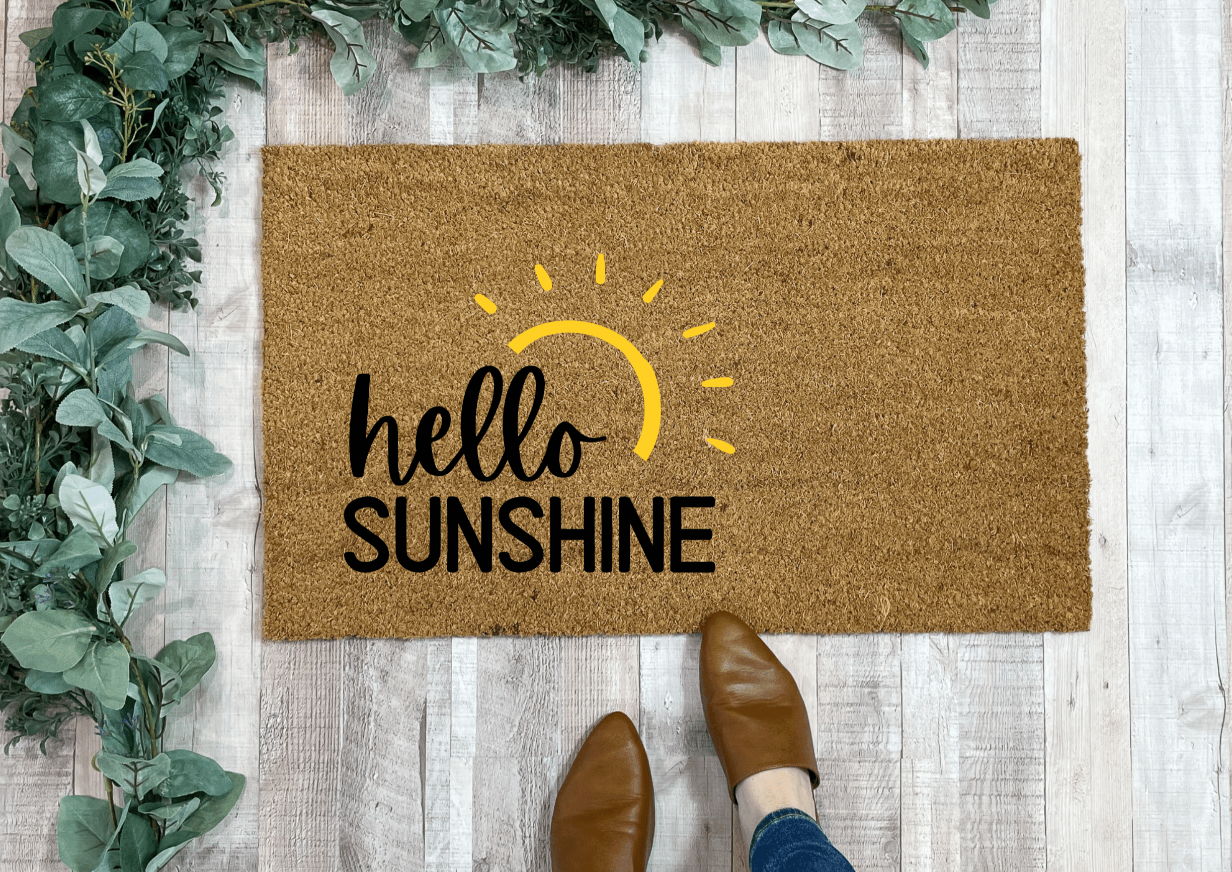 Welcome your visitors with a sunny greeting! This Hello Sunshine Doormat is the perfect way to start your summer with a warm and cheerful welcome. Hand painted and made from natural coir fibers, it's sure to catch the eye of your visitors with its bright sun design and bold text. Smiles guaranteed!