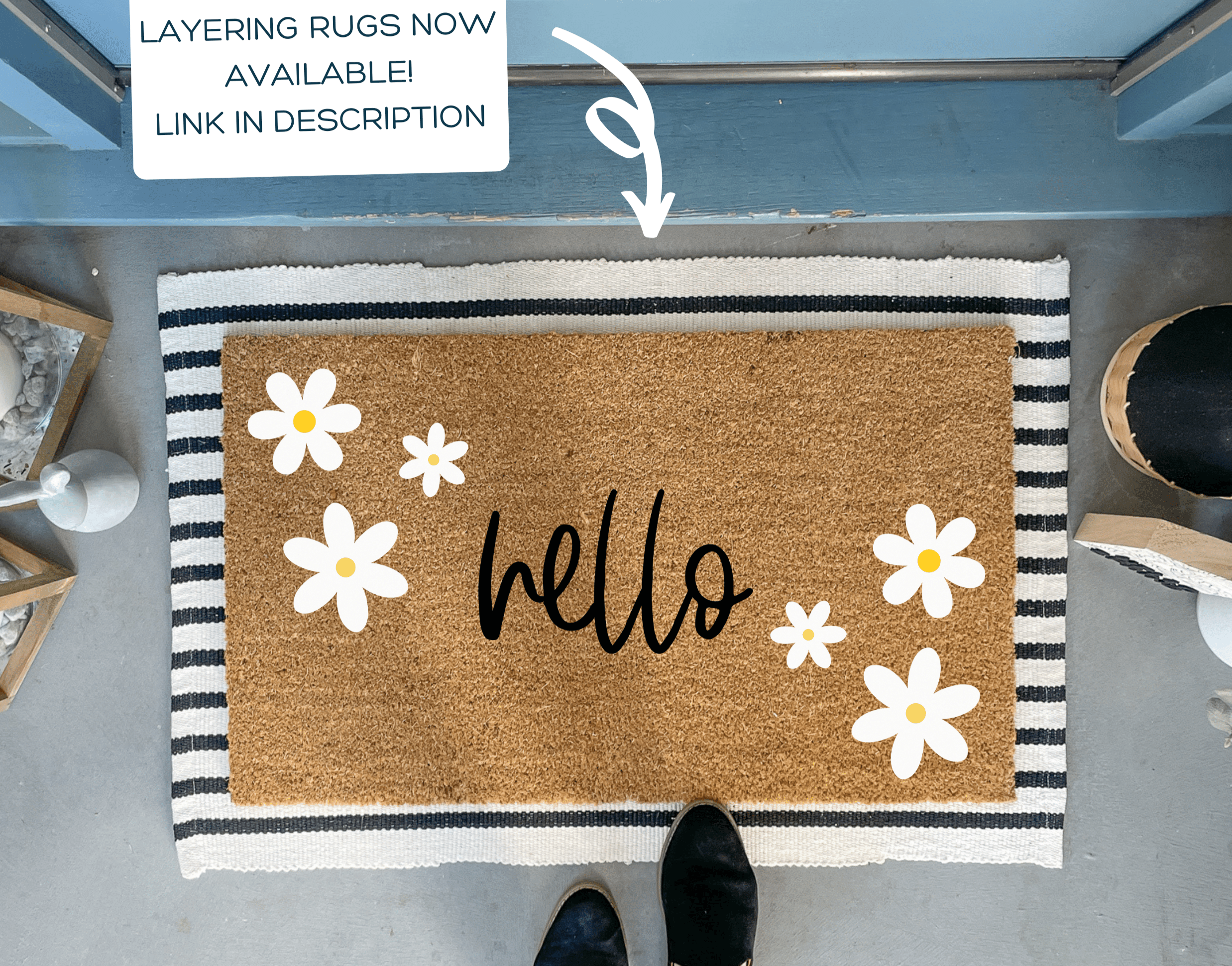 Welcome warmer weather and greet your guests with our Daisy Doormat! Perfect for any season, this doormat features white and yellow daisies, and a beautiful script 'hello' across the doormat. Welcome visitors with a bright, cheery welcome.