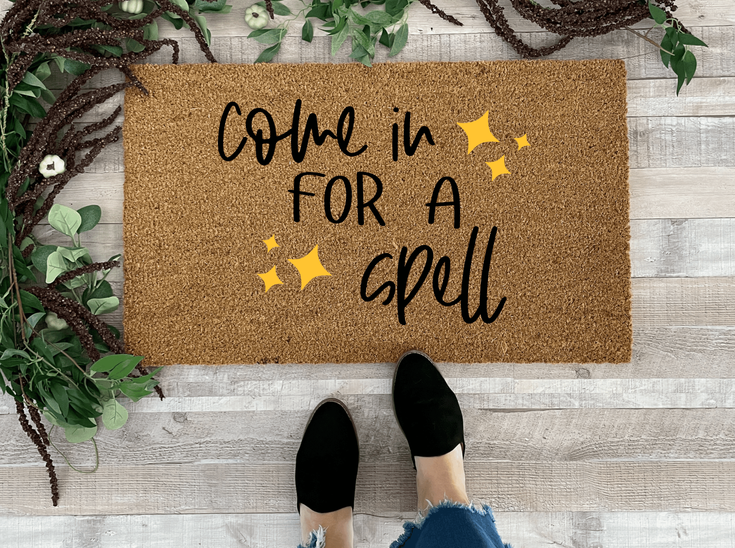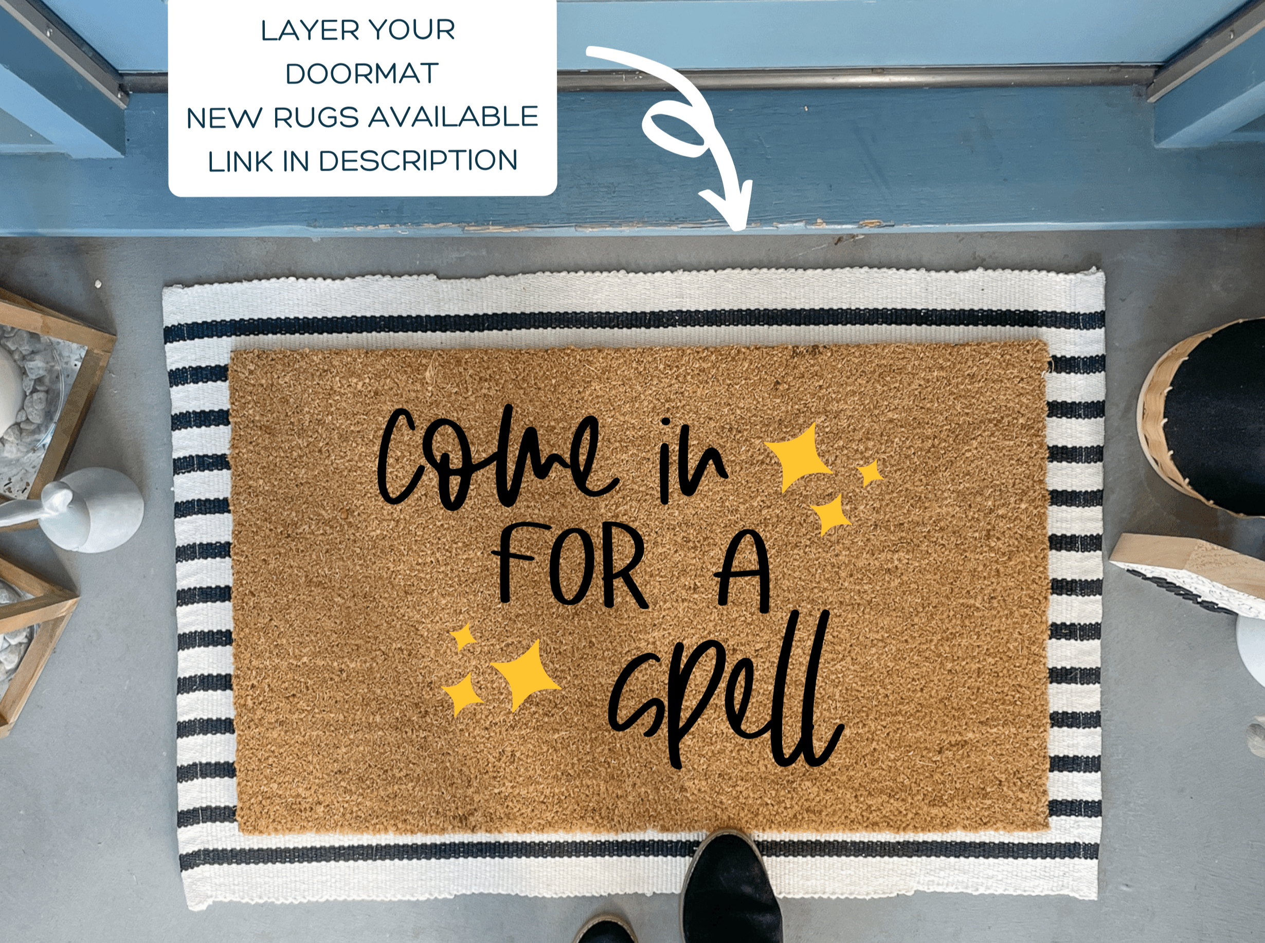Add a fun welcome to your entryway decor with our Funny Spell Halloween Doormat. This durable door mat features bold text and star design that's sure to catch the eye of your guests, and it complements your Halloween front porch decor. All of our funny welcome mats are hand-made just for you!