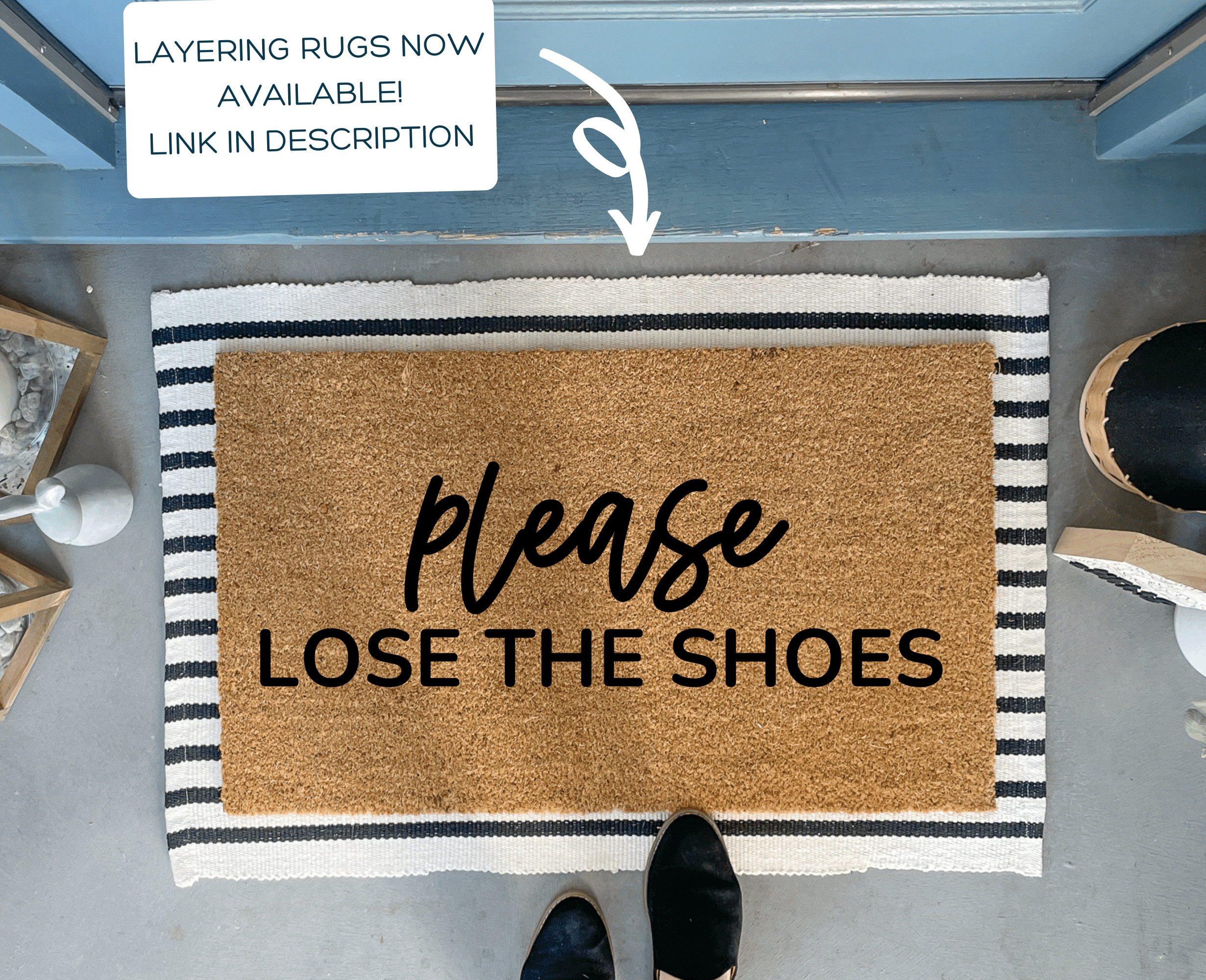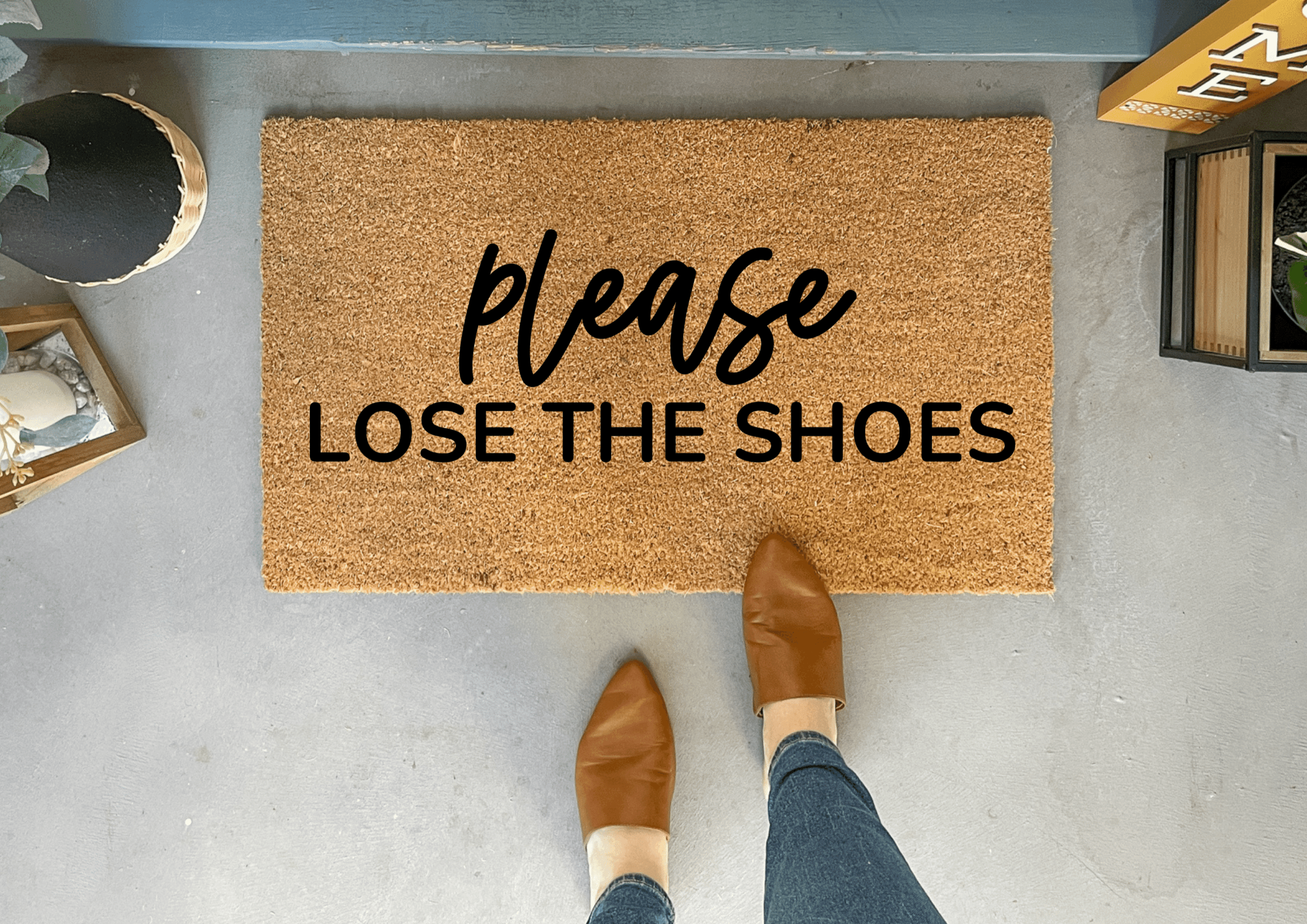 Let your doormat do the talking! Our Lose the Shoes Welcome Mat is the perfect way to convey your house rules to your guests! Our welcome mats are hand-made to order and available in 3 sizes!
