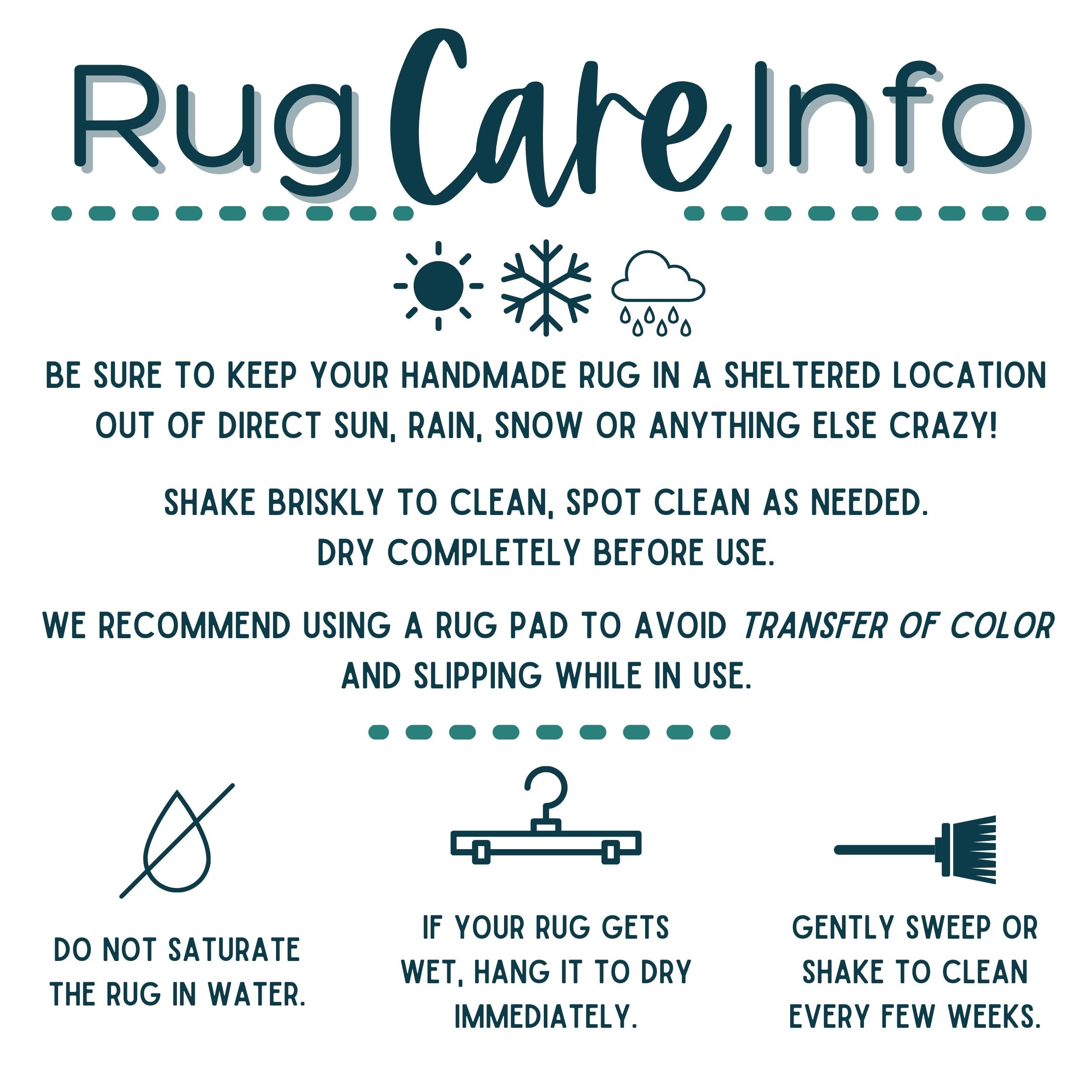 - Standard size, approx. 26x40 inches to fit most doors. Due to the handmade nature, the size may vary slightly from rug to rug.