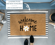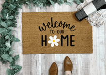 Welcome spring and greet your guests with our hand painted Welcome To Our Home Daisy Flower Doormat! Perfect for year-round use, this doormat features a white and yellow daisy flower, and a beautiful script text across the doormat.